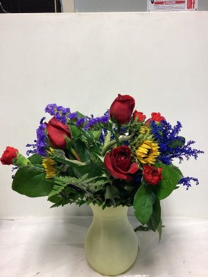 Beautifully done. My dog Eli looks just like the flower arrangement. The persons who ordered the bouquet live in Israel.