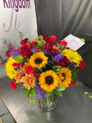 Beautiful flower arrangement and excellent customer service. I recommend Flower Kingdom 100%. Thank you so much!