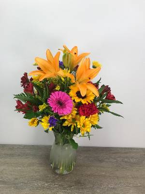 Delivery was perfect and Mom loved the flowers! From the picture, I thought it was a little skimpy for the price. But I will definitely use George's again though!
