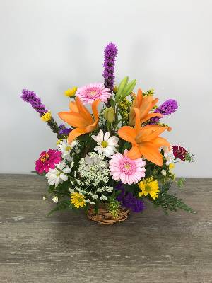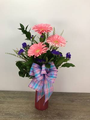 I like the airy arrangement. Lovely. Might have added just a few more flowers.