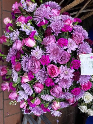 Thank you for the beautiful casket spray you created for my mother's service. The arrangement was elegant, fresh, and made with great care. It meant so much to our family during such a difficult time.