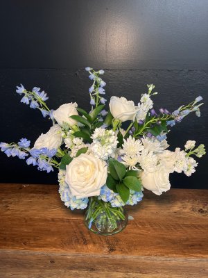 This is beautiful!!! I love seeing what is being sent out as I am out of state and can't see them myself. Thank you all so much. These flowers will be the cherry on top of a beautiful 90th birthday celebration for my Mimi. She is in an assisted living facility now, but at her home she lived in for years she always had white/blue hydrangeas.