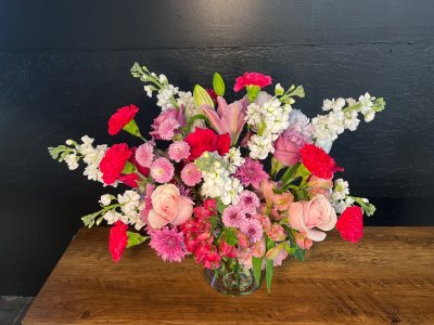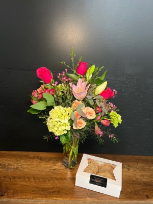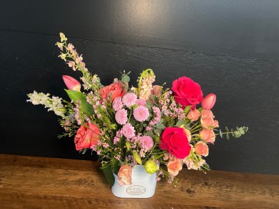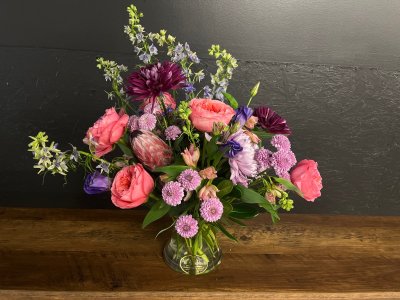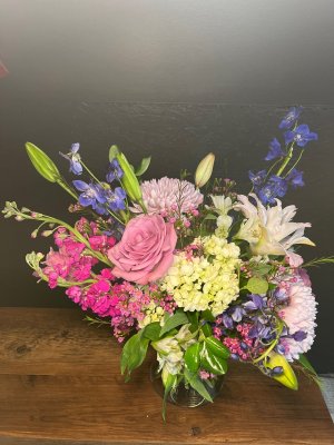 This is a designers choice arrangement, and isn't stunning! So beautiful, fresh and the scent is gorgeous. I am so pleased with my flowers, thank you! Don't be afraid to let the experts do what they do best!