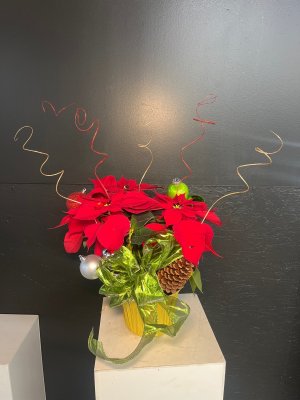 The Poinsettia arrangement is beautiful. I appreciate the picture very much because not all recipients have the capability of taking photos of flowers sent them!!