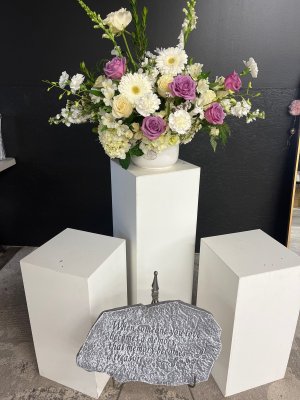 Beautiful 💜 So happy with the outcome and customer service was wonderful and always pleasant. I called several times and the ladies were very kind and patient with my requests. To see the arrangement prior and delivery notification is a great service.