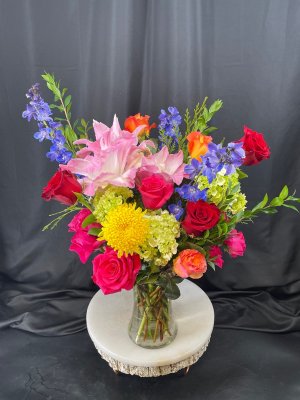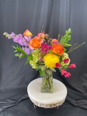 I'm from out of town and wanted to utilize a small business instead of a big out of town corporation. I believe in this! I called and spoke with Sydney, so helpful so thank you! I asked for something for my sister in law who had surgery yesterday. I asked for something bright and cheery like confetti or petal party but a little disappointed there weren't more blooms. I need to take responsibility because I told her that she was the expert in this area so I gave her the reins. I wanted to spend $100 but for $100 I thought there would just be more flowers, the arrangement above is beautiful and I'm sure it will brighten her day and aid in her healing but I was hoping for a more full bouquet like the confetti or petal party pictures on your website. Thank you for your the two day turn around and still happy to spend my money with small business. Thank you