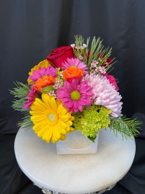 All A' Bloom did a fantastic job with the beautiful Rich Hues arrangement. I sent this arrangement to my friend who was celebrating her 85th birthday and she absolutely loved it and the chocolate candy. CUDOS! for a job well done.