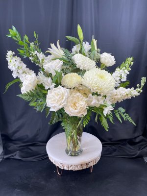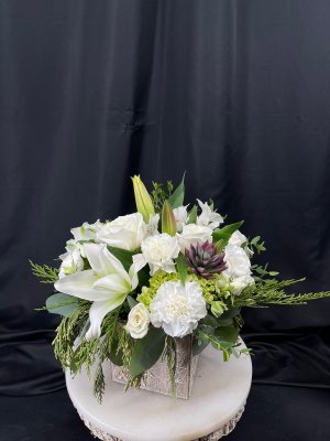 I purchased these flowers for my wife's 70th Birthday. My wife seems thrilled with them. I was a disappointed. Instead of ordering the arrangement on line, I visited the store in person to make sure everything was perfect. There were two people working in the store when I arrived and no other customers. The first person that I talked to, seemed like she couldn't ditch me fast enough onto the other person. I was then asked how they could help me. I told her that it was my wife's 70th birthday and that I really wanted to buy something stunning. (I was prepared to pay up to $500 and I was pretty excited about putting this whole thing together). I told her that I had seen something on the website that I thought would be a good starting point and that I wanted to make sure this was really big. She walked me to the cooler and pointed at a couple of different older looking arrangements to show me how big it might be. They didn't really have any good representation of the flowers that might be in it. I tried to get the lady engaged in a real discussion on what we could do, up to and including the container. I told her that I was much more interested in putting the money into the flowers than the container. She pointed at the containers and we moved on. Without going through the whole conversation, all I can say is that she burst my bubble of enthusiasm for the whole process. I was in and out in 15 minutes or so and spent much of the time just giving them my billing information and delivery address. Then the day comes for the delivery, which I paid extra for a window from 10-2 and I get a phone call from the office and they ask if they can substitute some flowers. What am I supposed to do, although to be fair, I didn't really care, but I hadn't picked the specific flowers in the first place. Then, the delivery person shows up and doesn't go to the front door of the building and is calling for me to find him to take the delivery. It's a big complex so this type of stuff doesn't get me wound up to much but it did take away the surprise of a nice surprise delivery when I am driving around the complex looking for the delivery guy. So, for the sake of rambling, In summary, I felt like I paid for a premium product and service and everything was just ok. I may have done just as good going to the florist at Hy-Vee. I am trying to figure out whether my attitude is more about the product and delivery or the "meh" attitude of the two people working that day. As a side note, if you really want to be labeled as a gifts store, you might want to go to Annabelles over in Leawood. That is a gifts store. The stuff I saw on your shelves in Lee's Summit looked much more like stuff you might run over and get at TJ Maxx. (I am sorry if this all seems harsh, but I am only telling you how I emotionally feel. This is largely an emotional purchase and this is how I honestly feel). I will say that I did post a picture on Facebook of my wife and her flowers and she did get many compliments.
