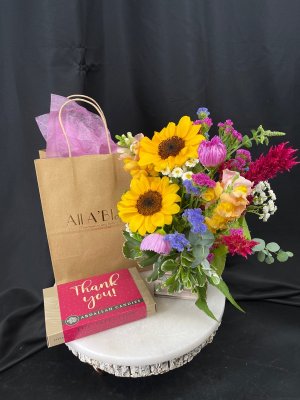 Great service, sister's birthday snuck up on me but this wonderful florist was able to send this cute arrangement out on the same day I placed the order. Thank you All A Bloom!!