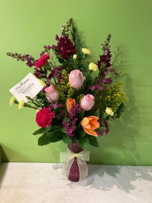 Beautiful flower arrangement and thank you for making her day special!