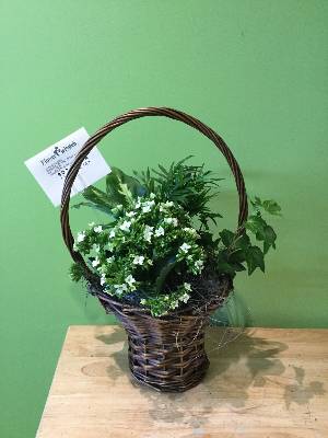 I liked the basket and plants but the ribbon was so little it looked pathetic. It was so small. It kind of ruined the presentation. I tried to call before it was delivered and was on hold for over a half hour. I wrote you a text and requested a bigger better ribbon and hoped you would do it. I saw the plant at the funeral and was so disappointed to see this tiny ribbon on a large basket. I will not use your shop again, nor will I recommend you. This was a funeral for my brother in law snd I am very disappointed!!! I actually felt embarrassed that the presentation was ruined by not putting a decent ribbon on it!!!