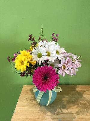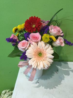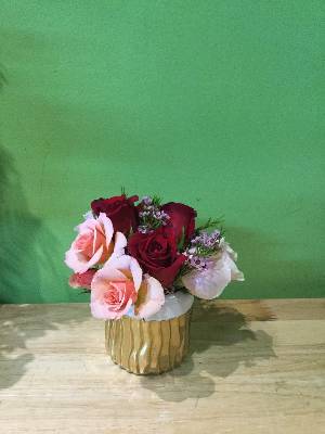 The pictures online showed brighter flowers. The gerber daisy isnt bright. And the roses are also pastels which doesn't represent the picture online