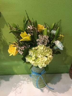 No it's a boy ribbon? Can I get more blue in the arrangement vs the yellow or even white?