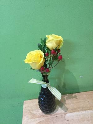 I appreciate the photo but it looks like the flowers were just stuck in a vase. Not what I would call an arrangement.