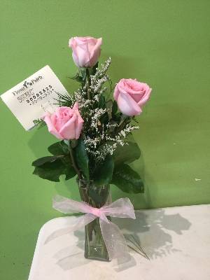 That is not the arrangement I ordered. Sure it has three pink roses, but where is the mercury vase, evergreen, gold bow and shimmer? Seriously, that is just your standard clear vase with three pink rose and random bow tied awkwardly around the middle.