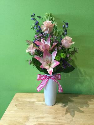 I'm a bit disappointed as I specifically asked to have yellow roses and lilies in the arrangement. It was clearly typed in the instructions I was able to view on my receipt. Thank you for prompt delivery, a picture of the arrangement, and for great custom