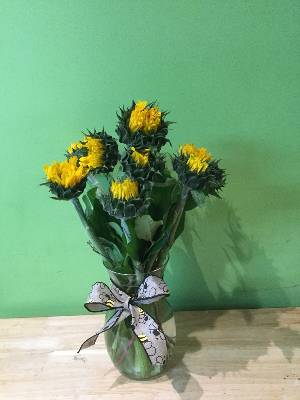 Not quite a pretty as the picture in advertisement. Hopefully they bloom sooner then later as they aren't very pretty this way. Normally LOVE the flowers that have been delivered to my kids when I order them from you but not sure this time was one of th