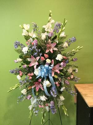 Wasn't sure when this photo would be posted so never saw it ahead. Looks like someone just walked by and stuck a bow in the middle, didn't really compliment the flower arrangement the way it was done. Not quite as full as I thought it would be, We would h