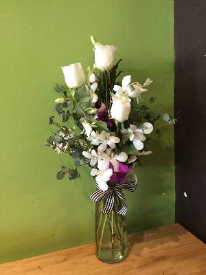 They are pretty, but I was asking for an orchid, not flowers with some orchid pieces. Must've been a lack of communication. I'm glad you sent a photo. Thank you,