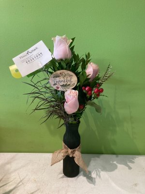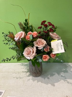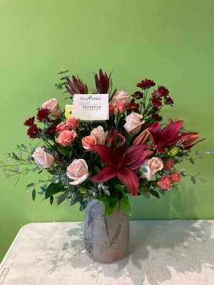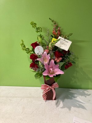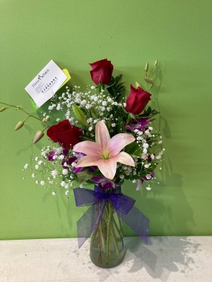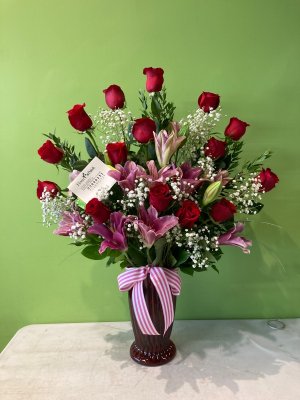 The arrangement was perfect! Even called on short notice, they were able to get it done and have it delivered that day. She really made my wife extremely happy for our anniversary! Thank you so much!