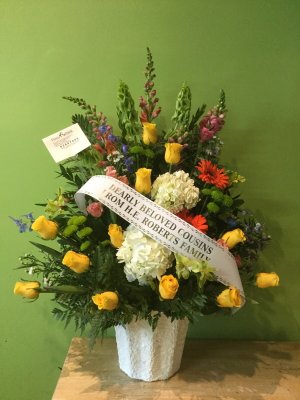 The flowers were done beautifully! The arrangement was much larger than I expected. It was delivered to the viewing and was prompt. I will definitely order from them again!
