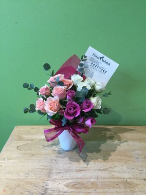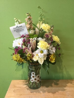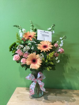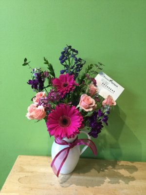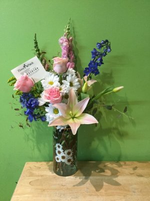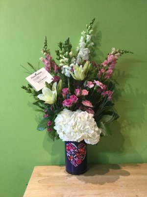 Excellent service and beautiful arrangement, just as pictured. Very friendly and accommodating. Highly recommend. This is my go-to place for ordering flowers. Thank you!
