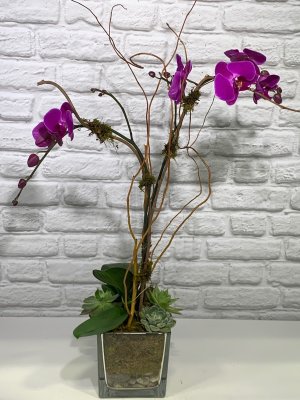 This looks nothing like the picture on the website. Base and arrangement are so much smaller. This looks like something I normally pick up at Jewel. This is the first time I have ordered from Ashland Addison and have been disappointed.