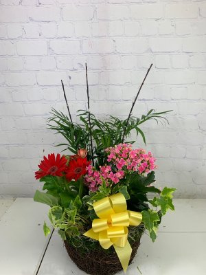 I am disappointed at the size of the container; it was described as a basket with a variety of flowers, some floral and some green. I honestly expected it be at least twice or three times the size it is. My mistake; next rime I will go on line to see what I am ordering. Sorry I cannot give a five star rating!