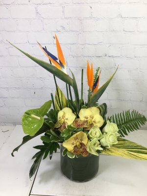 I love this gorgeous tropical arrangement. Beautiful, like a day in paradise!! Five stars!!