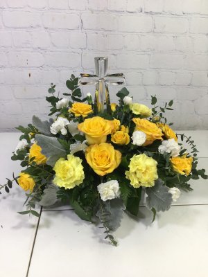 The beauty and freshness of the flowers in this arrangement are stunning. Thank goodness ou all very much!!