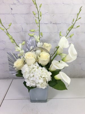 The orchids are lovely. I do not like Birds of Paradise personally, but I believe the recipient does and I asked for something colorful with orchids in a clear vessel. So, well executed! Thank you.
