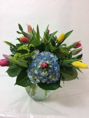 There must have been a miscommunication with the person who took the phone order. I wanted a table centerpiece. What I received were a bunch of tulips in a vase. A non-arrangement. I could have picked up tulips at Marianno's , for less money, if that wa