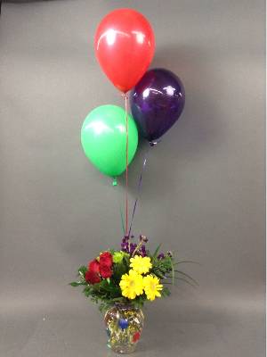 The Balloons deflated in one day and it appears as the purple flowers are already dying. Not the quality I have come to appreciate from Ashland Addision.