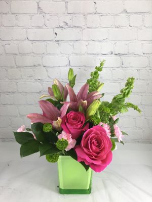 Flowers were a big hit! Your business practices made it easy to see when the flowers were ready, the final product, and the time and date of delivery… Beautiful arrangement and you made the purchase experience painless…