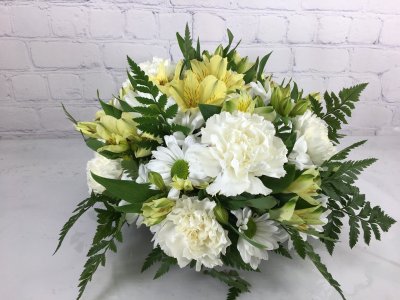 I was hoping the Bells of Ireland would be more the focal point as I specifically asked if they were in stock and could be used. In the picture the yellow flower and white rose looks wilted. Hope it looks fresher and there are more stems of Bells of Ireland when I get to the funeral home.