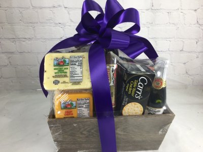 I would have preferred a softer blue ribbon, plus a higher quality crackers than Carr's. Also, at least one other cheese selection. I can't tell what else is in the basket besides the items out front. I would expect some sort of nuts and several other products at least. I'll have a better chance to review this product once I get feedback from the recipients, if you're interested.