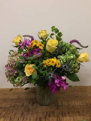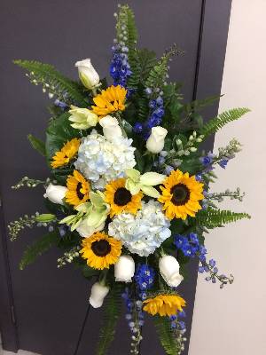 Beautiful fresh flowers-great quality. I -however asked for a lower fan shaped arrangement-was alittle overpowering for the table. It all worked out after all . You had it scheduled for 9:am delivery so we rushed to make sure we were there and It turned o
