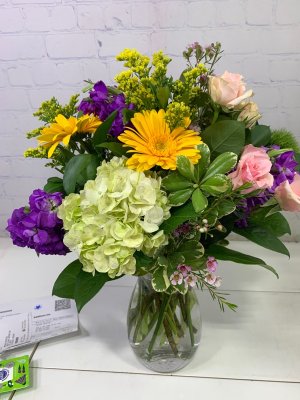 I love that you sent a photo of the arrangement! It looked beautiful and true to image online. Thank you for your excellent service!
