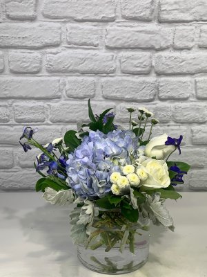 The beautiful flowers made me smile! In my favorite colors of blue and white, they are just perfect!