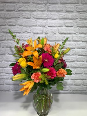 Absolutely gorgeous flower arrangement! The bright colors are perfect during these cold months.
