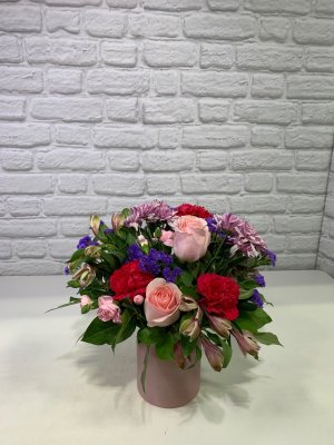 Flower arrangement is beautiful! Much appreciated because you listened to my request. Colorful roses & greens!