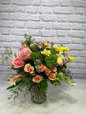 Absolutely gorgeous flower arrangement! The bright colors are perfect during these cold months.