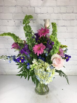 A gorgeous arrangement of the most fresh flowers with incredible color! Beautiful!!