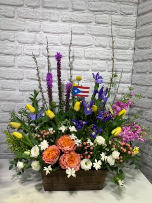 Beautiful arrangement for Easter. Tulips and roses not completely open so perfect for early delivery so would last a long time of enjoying. Very full and lush.