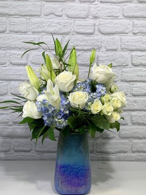 Carol raved about how beautiful the arrangement was. She loved the metal planter. Her wedding flowers were also from your florist. Thank you ⭐⭐⭐⭐⭐