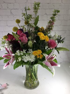 A gorgeous arrangement of the most fresh flowers with incredible color! Beautiful!!