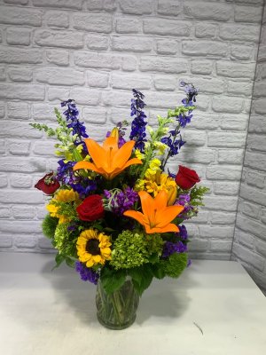 Absolutely gorgeous flower arrangement! The bright colors are perfect during these cold months.