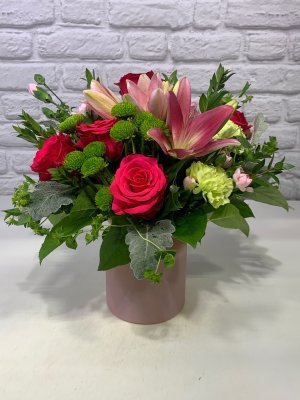 Flower arrangement is beautiful! Much appreciated because you listened to my request. Colorful roses & greens!
