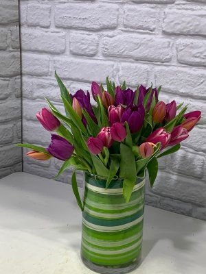 The picture of the tulips is very pretty. I hope it is the actual flowers that are to be delivered. They were very punctual and communicative. The only thing I could change would be the bows on the arrangement. Everything else looked like the arrangement I originally chose!