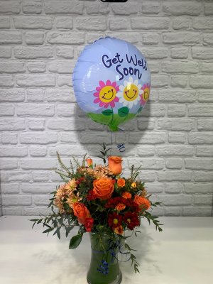 Flower arrangement is beautiful! Much appreciated because you listened to my request. Colorful roses & greens!